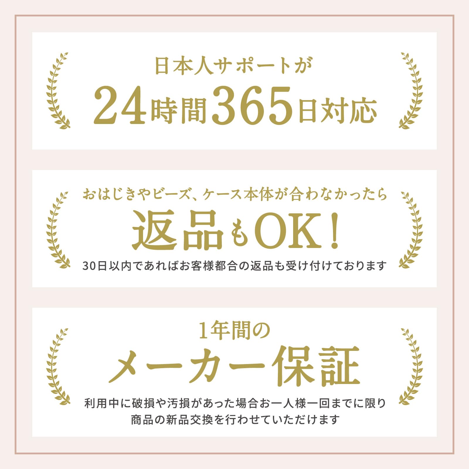 ケースにある14個のスペースに、おはじき・ビーズ・リボン・タイルシールなど、好きなアイテムを自由に詰め込んで、自分だけのデザインが楽しめます。
